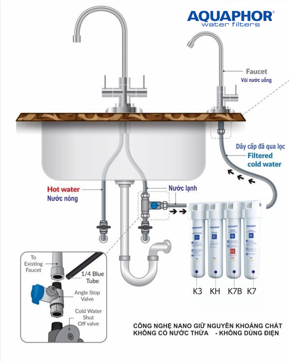 - Aquaphor Crystal H: là dòng máy lọc nước NANO siêu lọc gắn dưới bồn rửa chén, có thiết kế nhỏ gọn, sang trọng và hiện đại. Aquaphor Crystal có 3 cấp lọc, bao gồm màng lọc NANO siêu lọc Aqualen, màng lọc than hoạt tính và màng lọc sợi thủy tinh. Aquaphor Crystal H có khả năng loại bỏ được 99% các chất hữu cơ, vô cơ, vi sinh vật và kim loại nặng trong nước, đồng thời giữ lại được các khoáng chất cần thiết cho cơ thể. Aquaphor Crystal H có vòi nước riêng biệt, có thể xoay 360 độ, thuận tiện cho việc sử dụng. Aquaphor Crystal H có tuổi thọ cao, chỉ cần thay thế màng lọc sau mỗi 12 tháng hoặc 6000 lít nước.